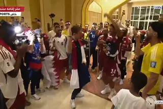 رقص جولين لوبيتيجي مدرب قطر بعد التأهل لكأس العالم 2026