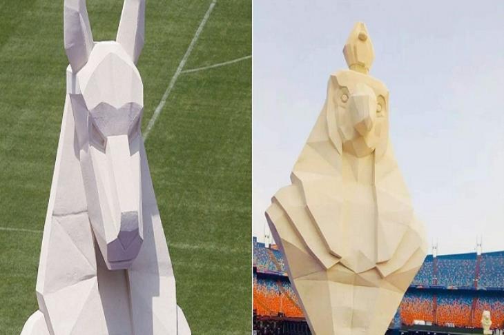 وبعد سويعات من قرار سحب أنوبيس من فقرات حفل الافتتاح، سُربت صور جديدة ظهر فيها أحد أشهر آلهة المصريين القدماء "حورس"، لكنه قوبل بانتقاد من زاوية أخرى مختلفة تماماً تتعلق بالإتقان في النحت والصنع.