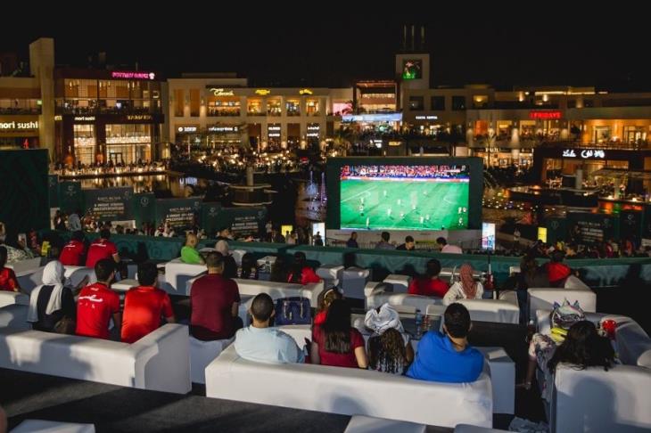 ويتيح المول للمشجعين متابعة أحداث المباريات على شاشة عملاقة توفر رؤية واضحة لجميع الحضور، إلى جانب تصميم الساحة الذي يشبه الاستاد وعربات الأكل الموجودة واللتي تقديم أشهى أنواع الوجبات والمشروبات ليستمتع بها المشجعين أثناء مشاهدة المباريات.