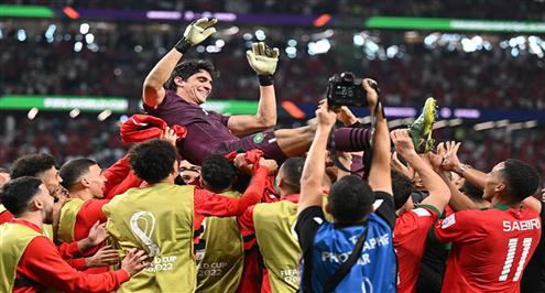 احتفال تاريخي لمنتخب المغرب بعد التأهل لنصف نهائي كأس العالم