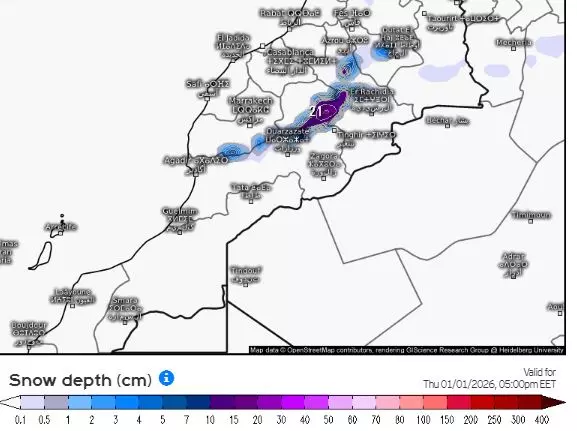 توقعات الثلوج لنهاية ديسمبر في المغرب من النموذج الأوروبي