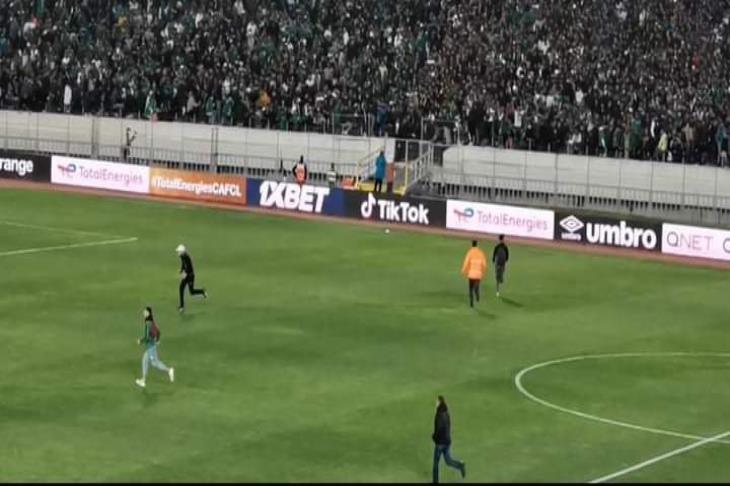 قامت بعض من جماهير الرجاء بالنزول إلى أرضية الملعب بعد الاندفاع الجماهيري من جماهير النادي المغربي أمام أبواب ملعب محمد الخامس.