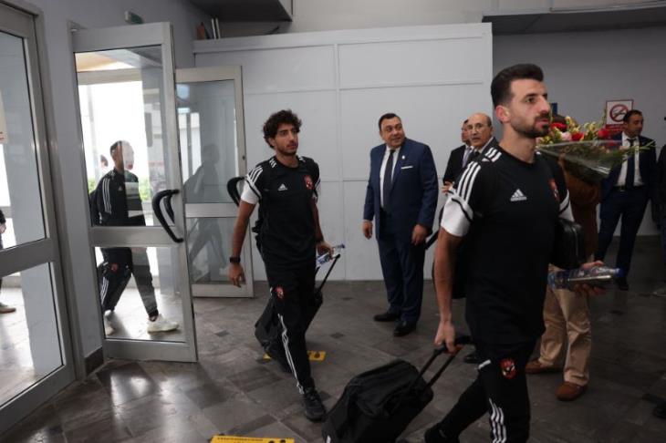 وتم استقبال بعثة النادي الأهلي التي يرأسها محمد الدماطي عضو مجلس إدارة الفريق الأحمر، بالورود لدى وصولهم إلى المطار.