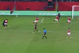 واحتسب الليبي أحمد الشلماني ضربة جزاء لصالح الجيش الملكي بداعي اصطدام الكرة في يد أليو ديانج، متوسط ميدان الأهلي.