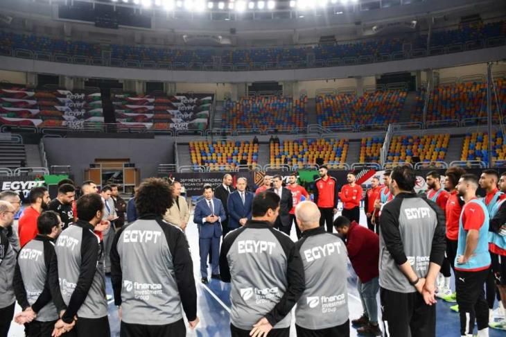 وكان في استقبال وزير الرياضة عمرو صلاح أمين صندوق اتحاد كرة اليد ومحمد الألفي المشرف العام على المنتخبات الوطنية لكرة اليد وأشرف البجرمي رئيس قطاع الرياضة بوزارة الشباب والرياضة ومحمد الكردي رئيس الإدارة المركزية للأداء الرياضي وعبد الأول محمد مساعد الوزير لشؤون البطولة ووليد عبد الوهاب المدير التنفيذي لهيئة استاد القاهرة.