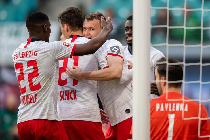 سجل ثنائية لايبزج لويس أوبيندا بالدقيقة 29 ثم يوسف بولسن بالدقيقة 44، بينما سجل للضيوف بينديكت جيمبير بالوقت بدلًا من الضائع.