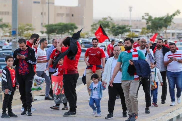 وبدأ توافد جماهير الأهلي والزمالك، إلى ملعب الأول بارك، قبل انطلاق المباراة بحوالي ساعتين ونصف.