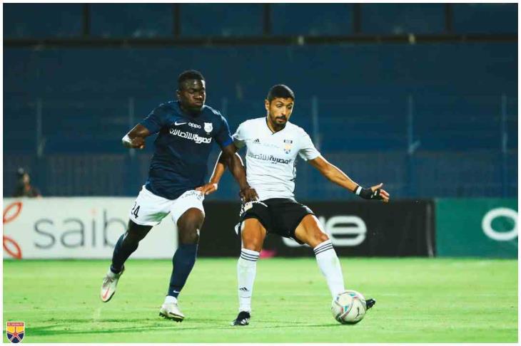 الحكم لايحتسب ركلة جزاء لإنبي وسط اعتراضات من قِبل لاعبي الفريق البترولي وطالب باستكمال اللعب.