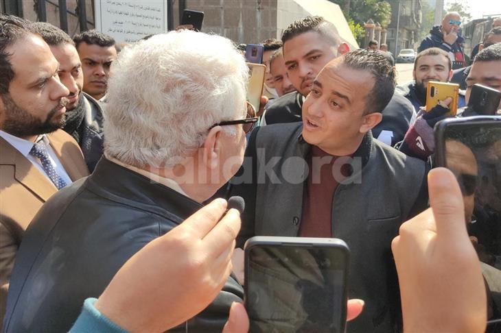 دخل مرتضى منصور في مشادة لفظية مع أحد المشجعين، في محيط مجلس الدولة، على هامش جلسة النظر في قضية أزمة قيد صفقات الزمالك، اليوم الأحد.