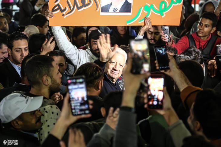 ظهر مرتضى منصور رئيس نادي الزمالك، مساء اليوم الخميس، لأول مرة في مقر القلعة البيضاء بميت عقبة بعد خروجه من السجن.