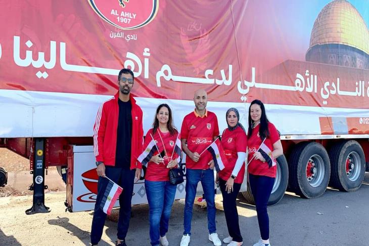 "محملة بالمواد الغذائية".. الأهلي ينظم قافلة غذائية لدعم فلسطين