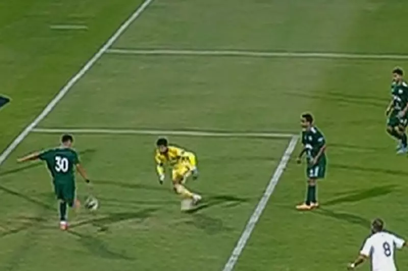 وعاد حكم اللقاء لتقنية الفيديو، ليحتسب مخالفة على مهاجم البنك لصالح حارس بتروجيت، بداعي وجود الكرة في حيازة حارس النادي البترولي.