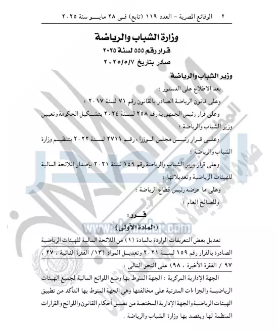ولكن وزير الشباب والرياضة قام في مايو الماضي بتعديل الفقرة الأخيرة من المادة 97 في قرار 555 لسنة 2025 ولكن هذا لا يقوض صلاحياته في إيقاف أعضاء مجلس إدارة الزمالك في حالة أن أثبتت اللجان الرقابية التي ندبت إهدار المال العام.