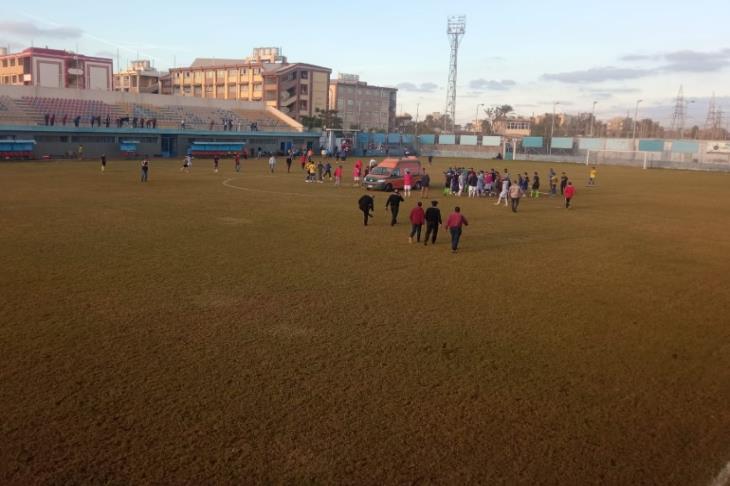 لحظة دخول سيارة الإسعاف في مباراة كفر الشيخ والقزازين