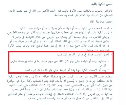 وبالعودة لقانون اللعبة، وتحديدًا المادة 12، المتعلقة بلمسات اليد، سواء المتعمدة أو غير المتعمدة.