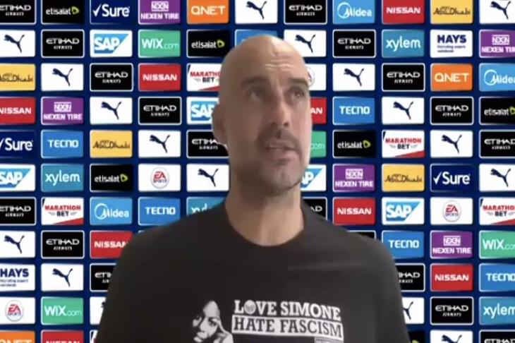 "أحب سيمون واكره الفاشية" ظهرت تلك العبارة على قميص جوارديولا، بجانب صورة سيدة سوداء البشرة، هي الفنانة الأمريكية الراحلة نانا سيمون، التي اشتهرت بمشوار تاريخي في مناهضة العنصرية والدعوة للمساواة.