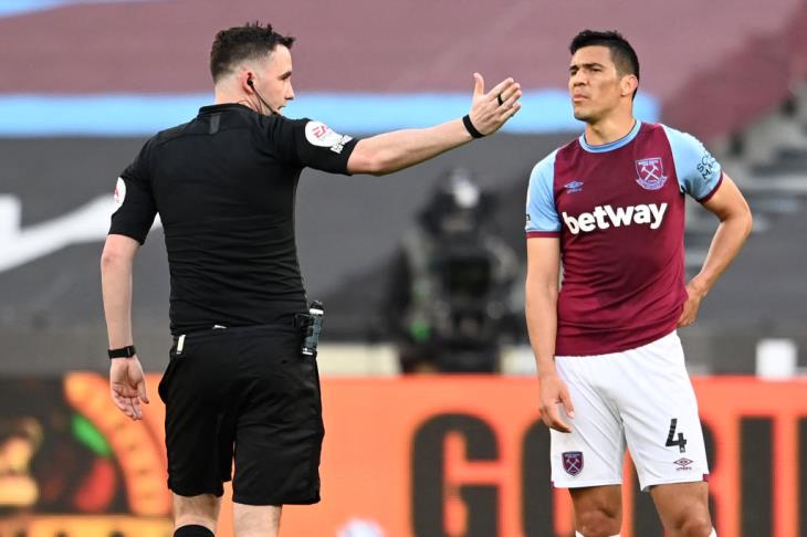 وكان الحكم كريس كافاناج ، الذي أدار المباراة ، طرد بالبوينا في الدقيقة 81 بعد التحام مع بن تشيلويل لاعب تشيلسي عندما حاول لاعب ويستهام إبعاد إحدى الكرات.
