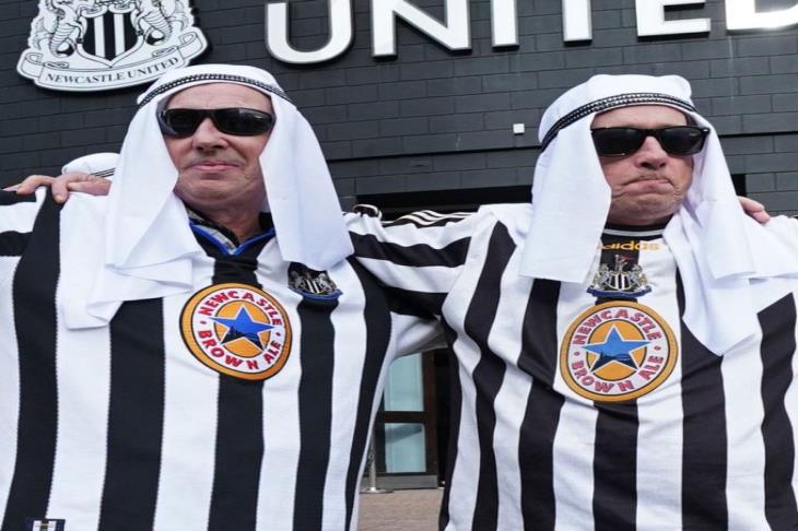 وأضاف البيان: "شوهد عدد من جماهير النادي مؤخرًا أمام ملعب سانت جيمس بارك وهم يرتدون أغطية للرأس وزيا عربيا، إيذانًا مع استحواذ صندوق الاستثمار السعودي على ملكية النادي".