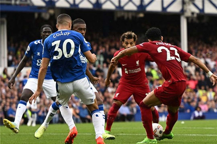 وكاد يتقدم ليفربول بالدقيقة 43 عن طريق لاعبه نونيز ولكن تسديدته ارتطمت بيد حارس مرمى إيفرتون ثم تصدت لها العارضة لتصل لزميله دياز الذي سدد كرة من داخل منطقة جزاء إيفرتون ولكن تصدى لها القائم.
