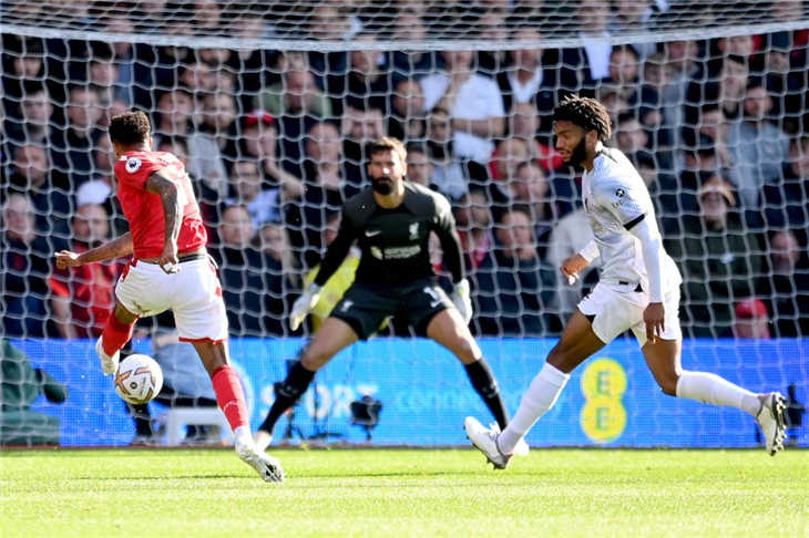 وسدد لاعب نوتنجهام كرة في الدقيقة 69 تصدى لها حارس مرمى ليفربول أليسون.