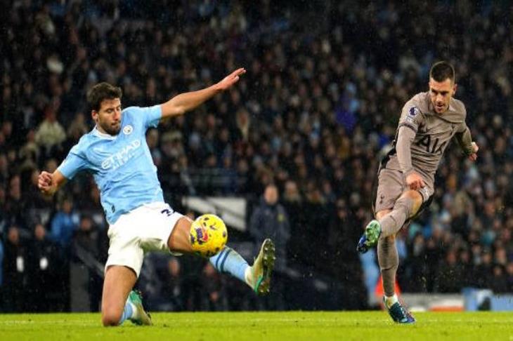 وحاول مانشستر سيتي توسيع الفارق مع بداية الشوط الثاني، لكن فيكاريو حارس توتنهام تصدى لتسديدة برناردو سيلفا في الدقيقة 47.