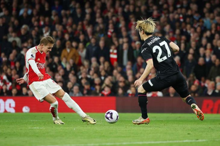 تمكن مارتن أوديجارد لاعب أرسنال أن يتقدم للجانرز في الدقيقة 24 من عمر المباراة، بعدما وصلت الكرة إلى اللاعب النرويجي الذي مررها بدوره إلى هافرتز الذي مرر كرة عرضية أرضية مرة أخرى إلى أوديجارد داخل منطقة الجزاء، ليسددها لاعب أرسنال بقوة إلى داخل الشباك.