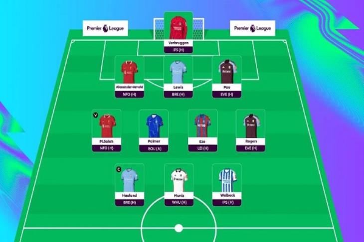 الوسط: محمد صلاح من ليفربول (نقطتان)، كول بالمر من تشيلسي (3 نقاط)، إيزي من كريستال بالاس (نقطتان)، مورجان روجرز من أستون فيلا (نقطتان)