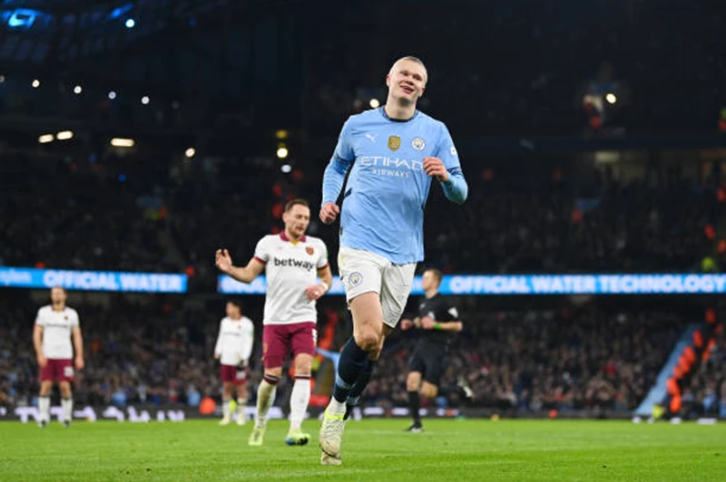 وأصبح هالاند الهداف التاريخي لمانشستر سيتي في شباك وست هام (9 أهداف).