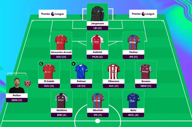 - الوسط: محمد صلاح من ليفربول (30 نقطة)، كول بالمر من تشيلسي (نقطة واحدة)، بريان مبيومو من برينتفورد (نقطتان)، جارود بوين من وست هام (نقطتان)