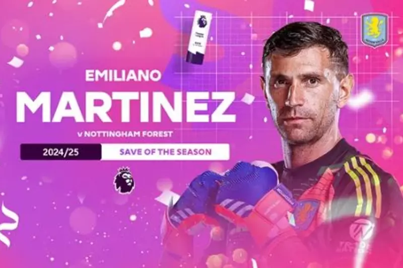 توج النجم الأرجنتيني إيمليانو مارتينيز حارس مرمى أستون فيلا الإنجليزي، بجائزة أفضل تصدي في الموسم الحالي من الدوري الإنجليزي الممتاز 2024-2025.