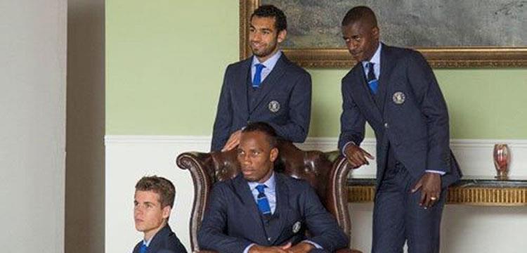 ظهر النجم المصري محمد صلاح لاعب فريق تشيلسي الإنجليزي مع أسطورة ناديه اللندني ديديه دروجبا، وزملائه بالفريق الأزرق في إعلان بشكل كلاسيكي يرتدون خلاله الأزياء الرسمية.