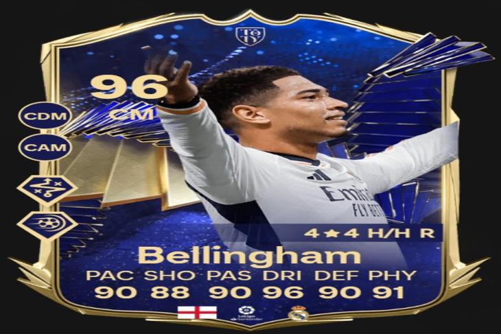 الإنجليزي جود بيلنجهام لاعب فريق ريال مدريد بطاقات 96.