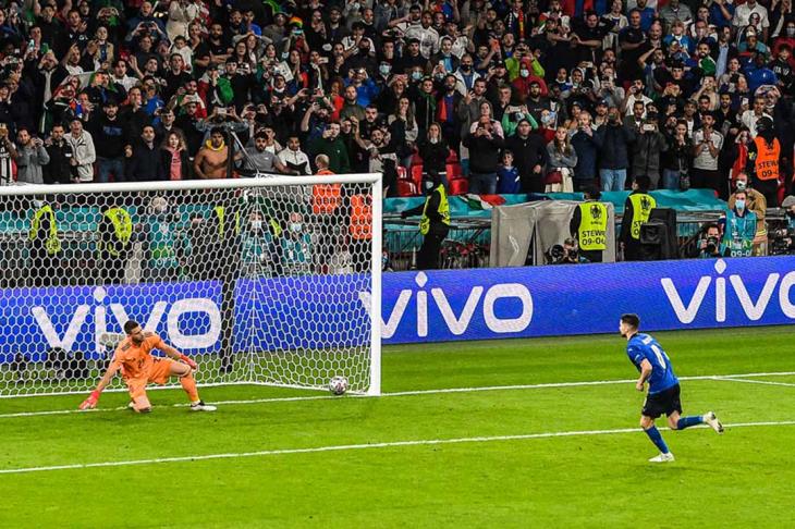 واصل المنتخب الإيطالي (الآزوري) قصة نجاحه الخيالية في بطولة كأس الأمم الأوروبية الحالية (يورو 2020) وحجز مقعده في المباراة النهائية للبطولة بفوزه الثمين على المنتخب الإسباني 4 / 2 بركلات الترجيح بعد تعادلهما 1 / 1 في الوقت الأصلي والإضافي للمباراة على استاد "ويمبلي" بالعاصمة البريطانية لندن بالدور قبل النهائي للبطولة.