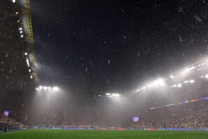 تعطلت أكثر من 20 دقيقة.. عاصفة رعدية توقف مباراة ألمانيا والدنمارك في يورو 2024 (فيديو)