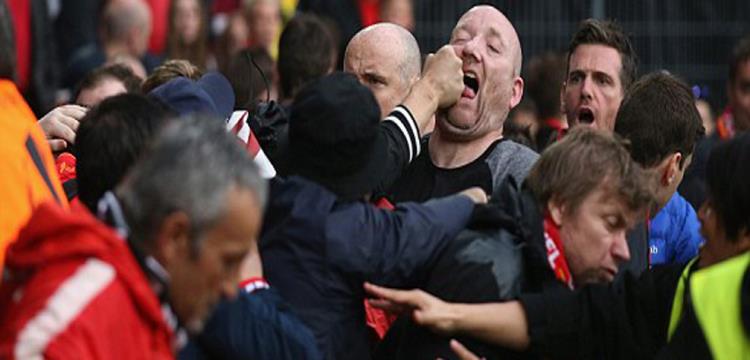 لكن في المدرجات المقابلة لوسط الملعب حدثت اشتباكات عنيفة بالأيدي بين جماهير الناديين ما جعل الشرطة تدخل سريعاً وتحاول فض الاشتباك الذي تطور لمشاجرات وإلقاء زجاجات وأشياء أخرى.