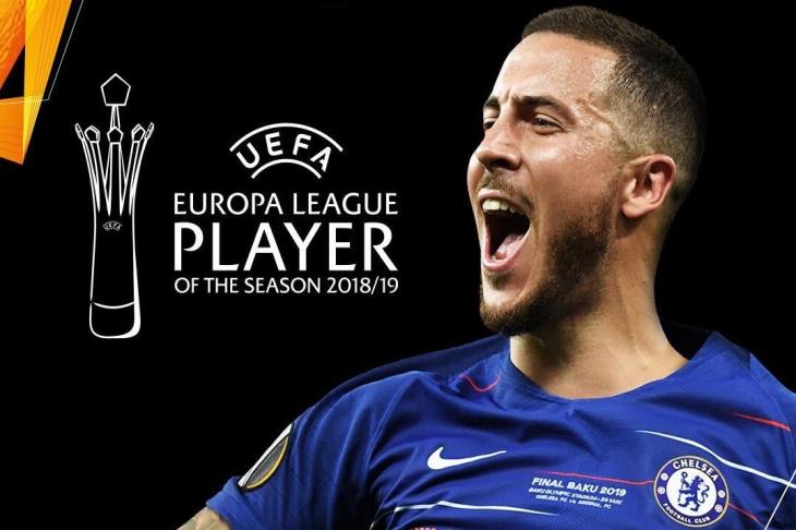 أعلن الإتحاد الأوروبي لكرة القدم عن حصول البلجيكي إدين هازارد على لقب أفضل لاعب في الدوري الأوروبي (اليوربا ليج) موسم 2018-2019.