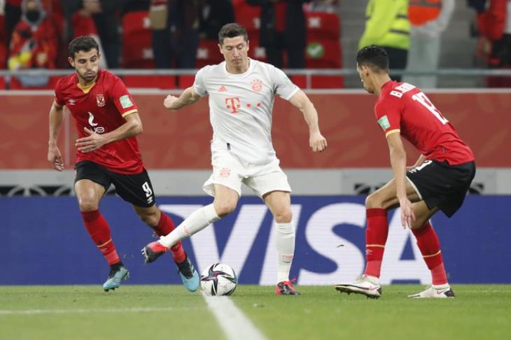 وسجل ليفاندوفسكي هدفي فوز بايرن على الأهلي في المربع الذهبي لمونديال الأندية.