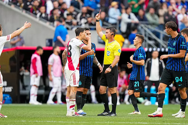 وشهدت الدقيقة 66 من عمر مباراة إنتر ميلان وريفر بليت، إشهار حكم المباراة البطاقة الحمراء المباشرة في وجه لوكاس مارتينيز كوارتا لاعب الفريق الأرجنتيني، بعد عرقلته لمهاجم إنتر ميلان أثناء الانفراد بالكرة.