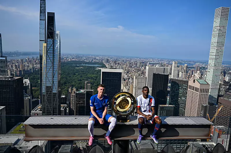 وتُعيد هذه الصورة الدعائية التي جمعت بين لاعبين من الفريقين المشاركين في نهائي كأس العالم للأندية 2025، قصة بناء مركز روكفلر الشهير في الولايات المتحدة الأمريكية والصورة الشهيرة التي تُدعى "Lunch Atop a Skyscraper".