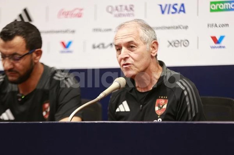 مارسيل كولر مدرب الأهلي خلال المؤتمر الصحفي لمباراة العين