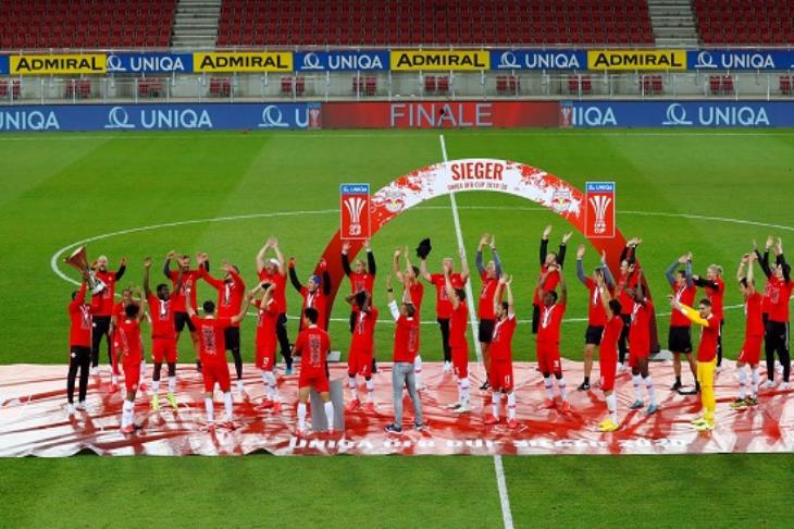 احتفل لاعبو ريد بول سالزبورج النمساوي بالتتويج بكأس النمسا للمرة السابعة بعد الفوز على أوستريا لوستيناو بالأمس.
