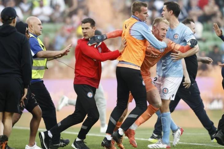 دماء على البساط الأخضر.. اقتحام واعتداء ينهي الديربي في أستراليا (فيديو)