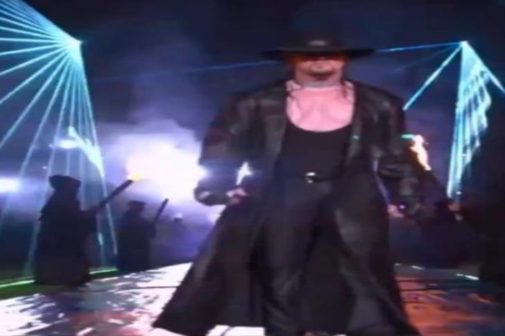 ودخل (أندر تيكر) إلى أرض الملعب قبل انطلاق المباراة، وسط بعض اللقطات الاستعراضية الخاصة والمعتادة منه.