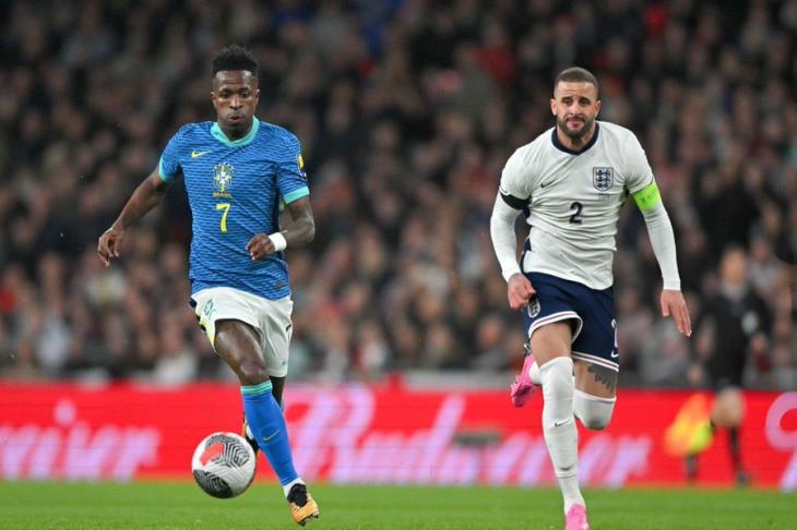 شهدت الدقيقة 11 من زمن أحداث المباراة محاول خطيرة من البرازيلي فينيسيوس جونيور الذي انفرد بمرمى منتخب إنجلترا ليسدد البرازيلي كرة اتجاه المرمى إلا أن قائد منتخب "الأسود الثلاثة" ينقذ فريقه قبل دخول الكرة الشباك.