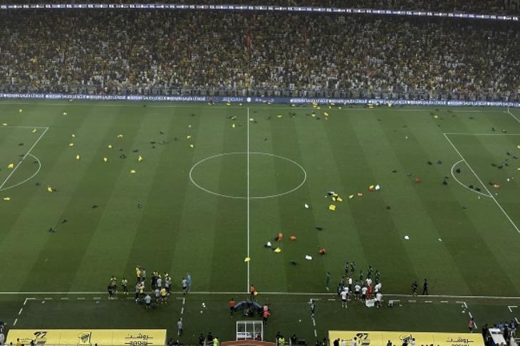 عاصفة ترابية تعرقل ديربي جدة وتؤثر على اللاعبين (فيديو)