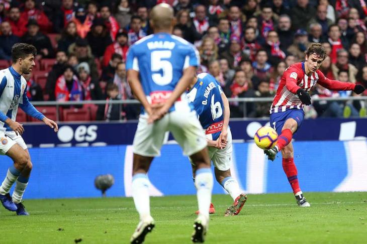 وسجل المهاجم الفرنسي الدولي أنطوان جريزمان هدفا من ضربة جزاء في الدقيقة 56 ليقود أتلتيكو إلى الانتصار الثالث على التوالي.