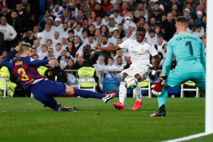 ووصل ريال مدريد إلى هدفه الأول في المباراة بعد مرور 71 دقيقة بعد تمريرة بينية حصل عليها فينيسيوس قبل أن يخترق منطقة الجزاء وسط غياب دفاع برشلونة ليصوبها في الشباك معلنًا عن تقدم أصحاب الأرض.
