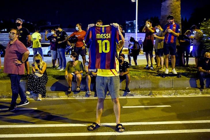 تجمع عدد من مشجعي برشلونة أمام مكاتب النادي للمطالبة باستقالة جوسيب ماريا بارتوميو رئيس مجلس الإدارة، بعد إعلان الأرجنتيني ليونيل ميسي رغبته في الرحيل عن البارسا.