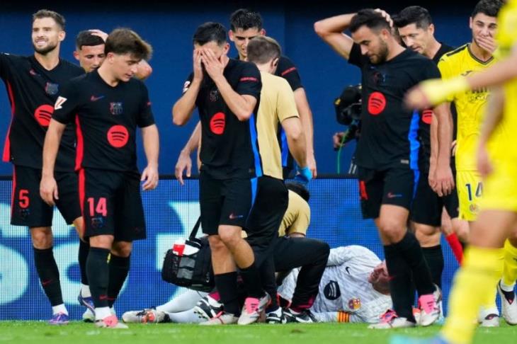 وسقط تيرشتيجن في مباراة برشلونة وفياريال بالأمس، وتم نقله إلى المستشفى.