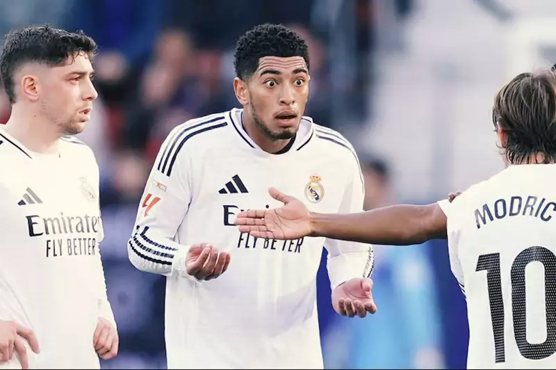 يبدو أن الإنجليزي جود بيلينجهام، لاعب وسط ريال مدريد، مهددًا بالغياب عن الفريق لفترة قد تصل إلى 12 مباراة، بعد طرده خلال مباراة أوساسونا.